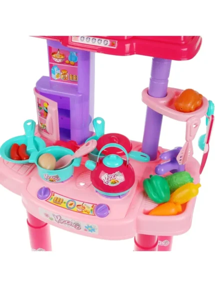 طاولة مطبخ للأطفال تتضمن موقد لعب و29 قطعة من ولوازم مطبخ، مما يضفي المزيد من المتعة على لعب