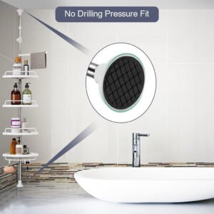 تصميم قابل للتعديل: يمكن ضبط ارتفاع الرف لحمل زجاجات بأحجام مختلفة ، مثل الصابون ، وزجاجات الشامبو ، وأدوات الحلاقة ، والإسفنج ، وأكثر من ذلك.