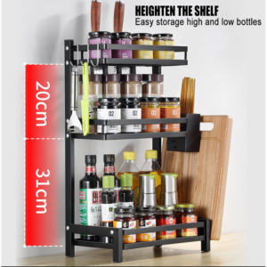 رف التوابل ذو الطبقتين مثالي لتنظيم جميع أنواع التوابل والزيوت والصلصات وعلب الحساء في مكان واحد.