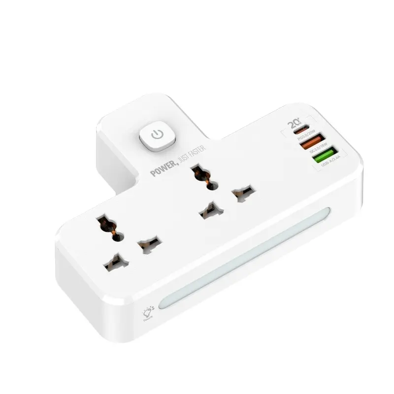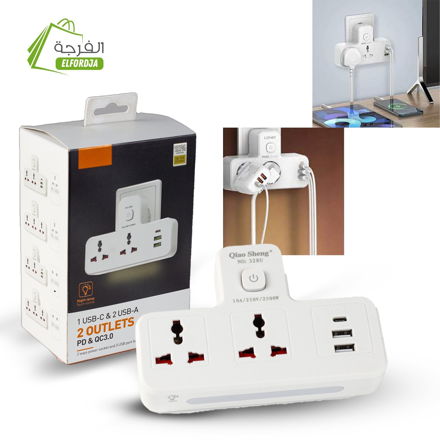 شاحن منزلي متعدد الوظائف سريع الشحن مع ضوء ليلي ونظام أمان للأطفال : Prise de charge rapide domestique multifonctionnelle avec veilleuse QC 3.0 et système de sécurité enfants RF/328u