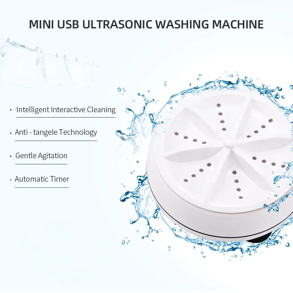 غسالة صغيرة محمولة 2 في 1 ، غسالة بالموجات فوق الصوتية Mini Machine à Laver Portable 2 en 1, Laveuse à Ultrasons avec Câble USB RF/LM-6261