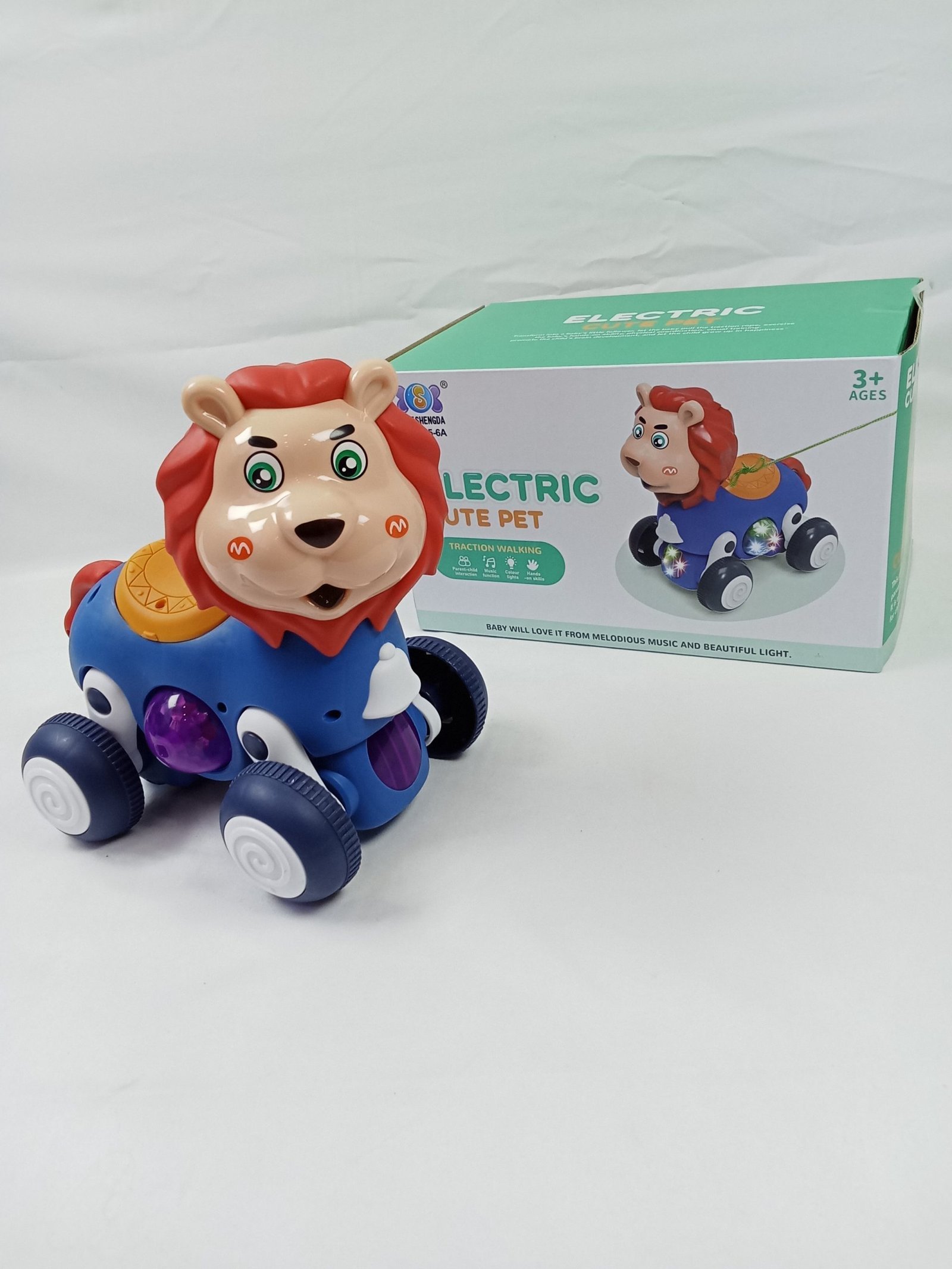 - لعبة جر للأطفال على شكل أسد: تجذب انتباه الأطفال بألوانها الزاهية والموسيقى المرحة.
