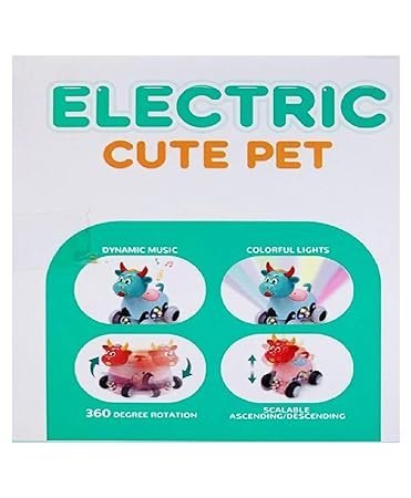 - دوران 360 درجة: تتحرك لعبة البقرة المضيئة وذات الصوت الموسيقي في جميع الاتجاهات وتصدر أصواتًا موسيقية مع إضاءات ملونة.