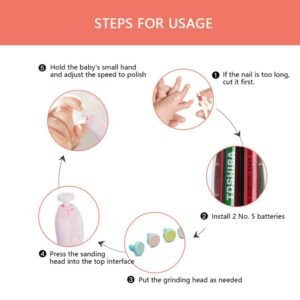 -Ce coupe-ongles électrique pour bébé avec un bouton facile à utiliser, haute et basse vitesse.