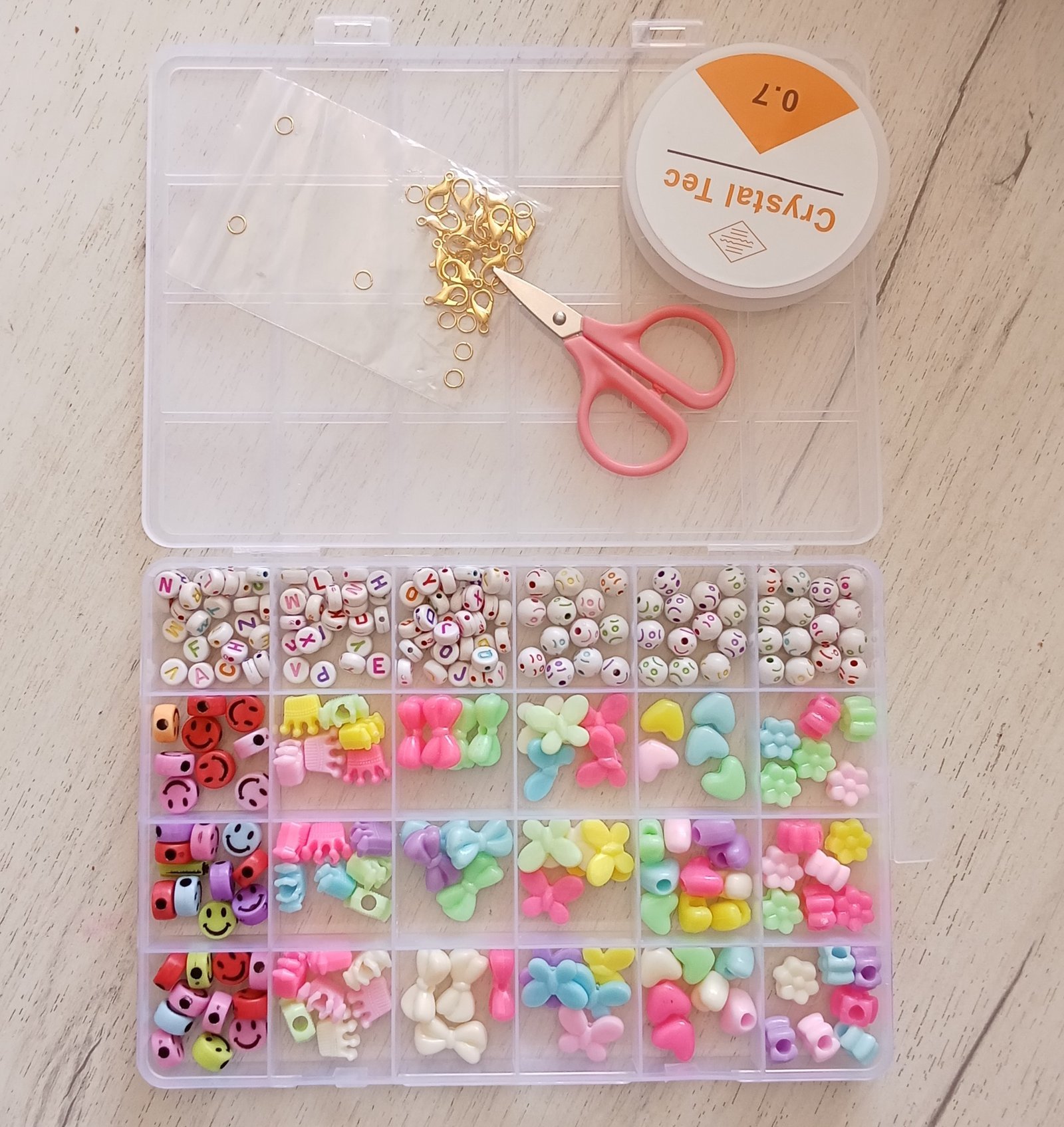 مجموعة بذور الزجاج و حبات الأحرف مع أدوات لصنع المجوهرات للأطفال 25 فتحة : Ensemble de pendentifs pour la fabrication de bijoux enfant 25grilles 2301421-5