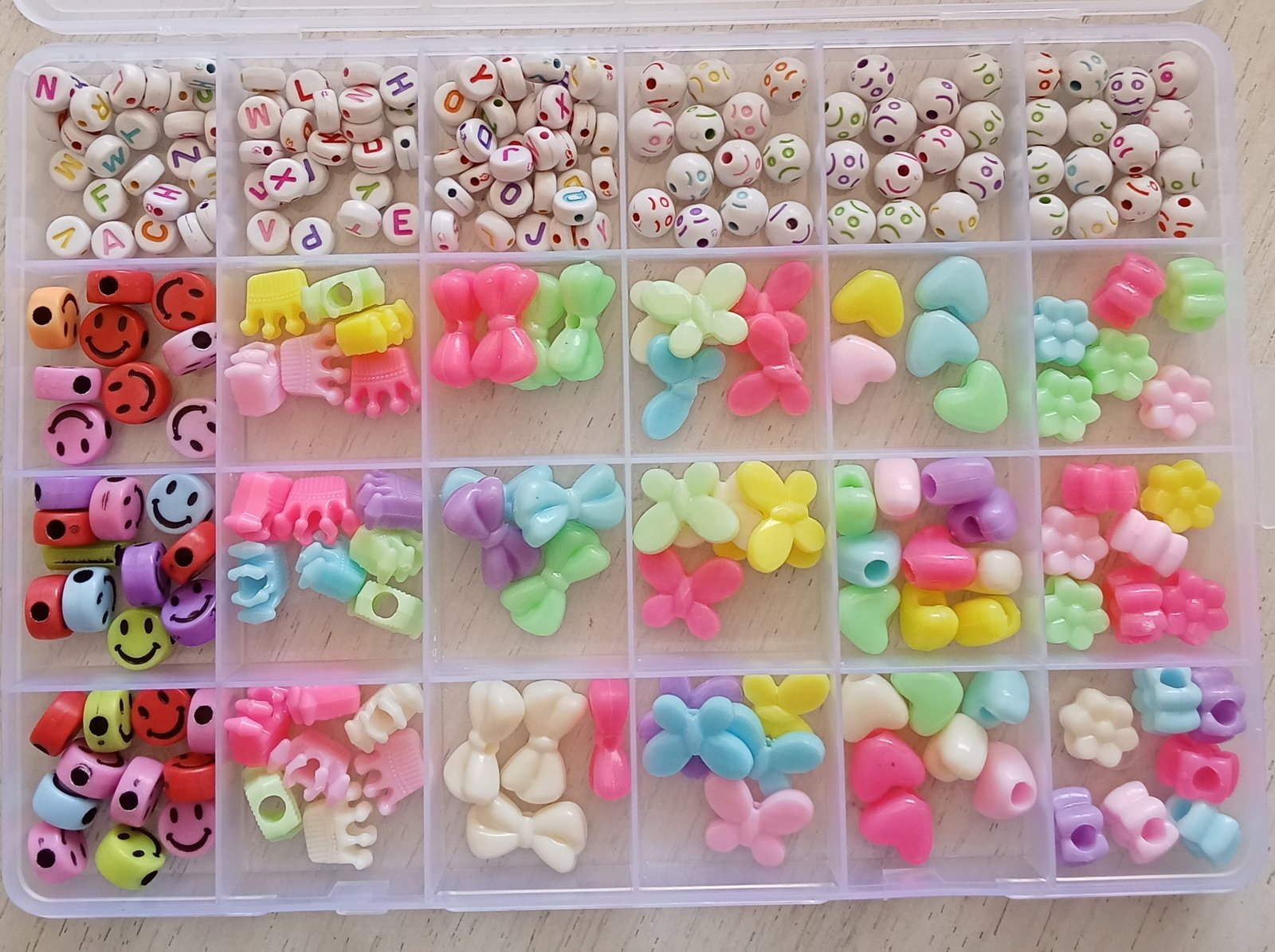 مجموعة بذور الزجاج و حبات الأحرف مع أدوات لصنع المجوهرات للأطفال 24 فتحة : Ensemble de pendentifs et de lettres pour la fabrication de bijoux enfant 24 grilles 889-51A