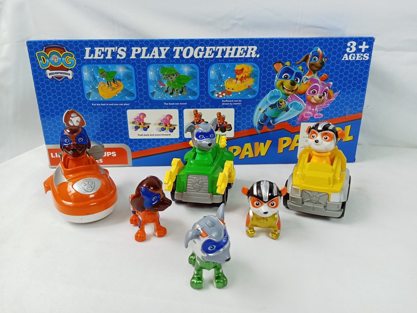 لمحبي Paw Patrol نقدم لكم هذه المجموعة المستوحاة من دوريات الإنقاذ ل paw patrol و المكونة من ثلاث شخصيات و ثلاث مركبات .