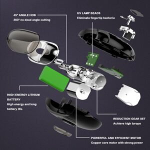 حافظوا على أظافر صحية ونظيفة مع تقليمها بدقة باستخدام مقص الأظافر الكهربائي ، سهل الاستخدام في متناول يدك ومتوفر بمجموعة متنوعة من الألوان العصرية حيث يمكنك العناية بأظافرك والحفاظ عليها بسهولة بكبسة زر واحدة، المقص مزود بموتور قوي يعمل على تقليم أظافرك بسرعة وبدون عناء، كما تعمل الإضاءة المخفية بالأشعة فوق البنفسجية تلقائياً عند التشغيل لإزالة البكتيريا من أطراف الأصابع، يتميز بعمر تشغيل طويلة و يحتوي على 3 سرعات قابلة للتعديل .